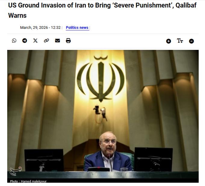 伊朗议长警告美国:对伊地面攻势将招致严厉报复